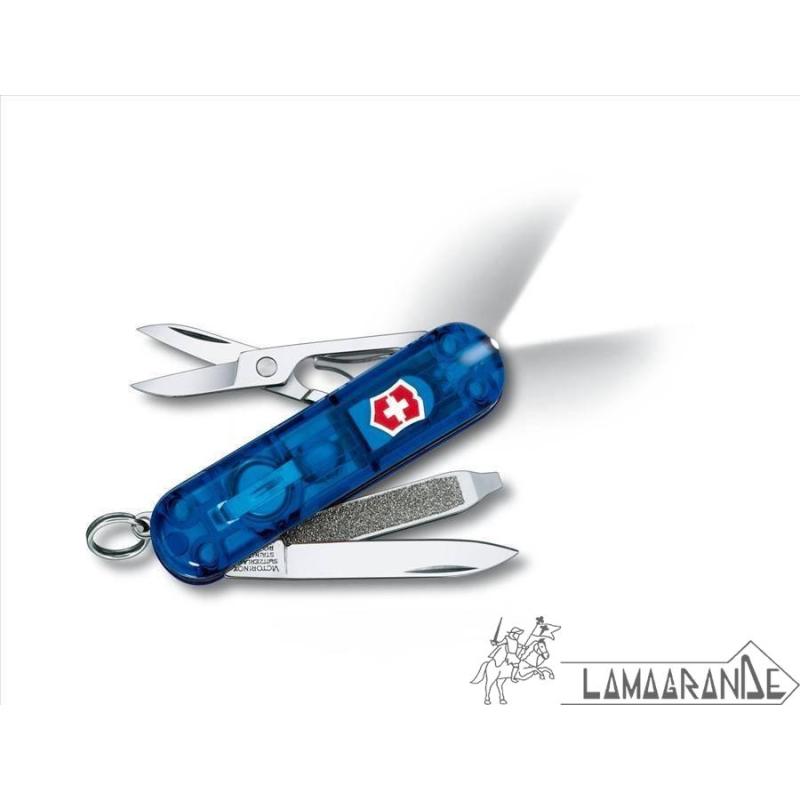Navaja multiusos Victorinox SwissLite de 58 mm de color rojo con hoja, lima de uñas con destornillador, tijeras, anilla, pinzas, palillo de dientes y linterna LED.